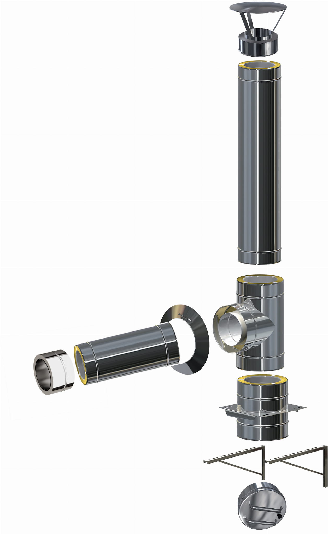 System dwuścienny izolowany, stosowany jako samodzielny komin zewnętrzny do kotłów atmosferycznych i kominków. Pozwala na ustawienie urządzenia grzewczego (kotła, kominka) w dowolnym miejscu w obiekcie, ponieważ komin prowadzi się na zewnątrz, montując go przy ścianie.